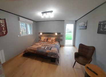Elle est située au rez-de-chaussée de la maison et dispose d’une porte fenêtre avec vue sur les montagnes.