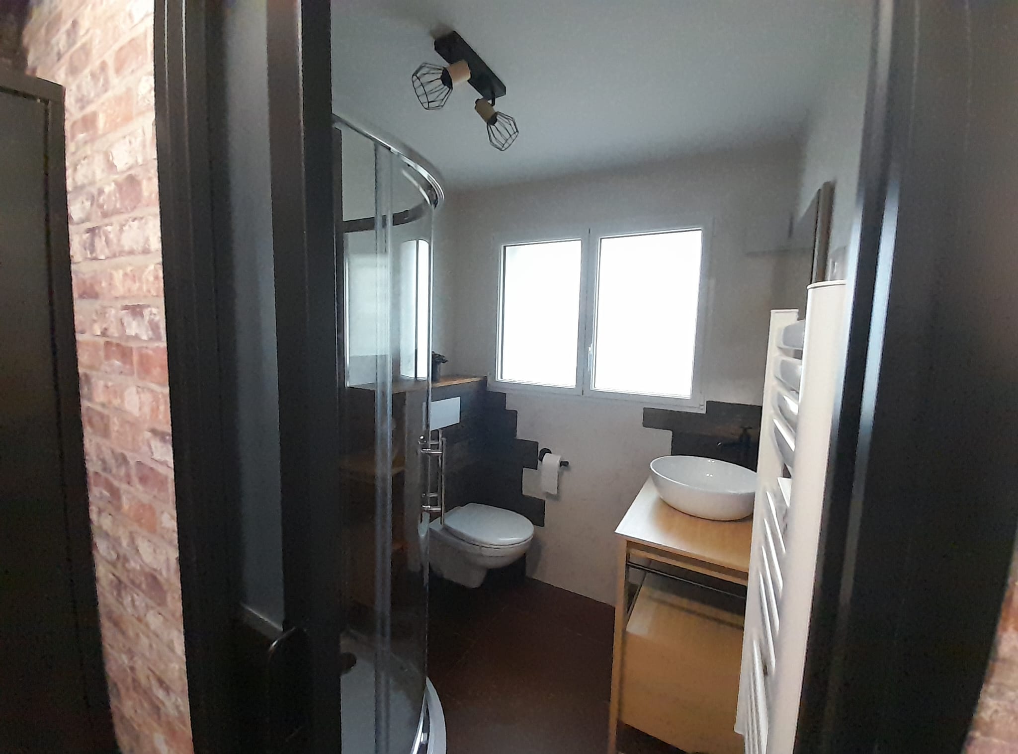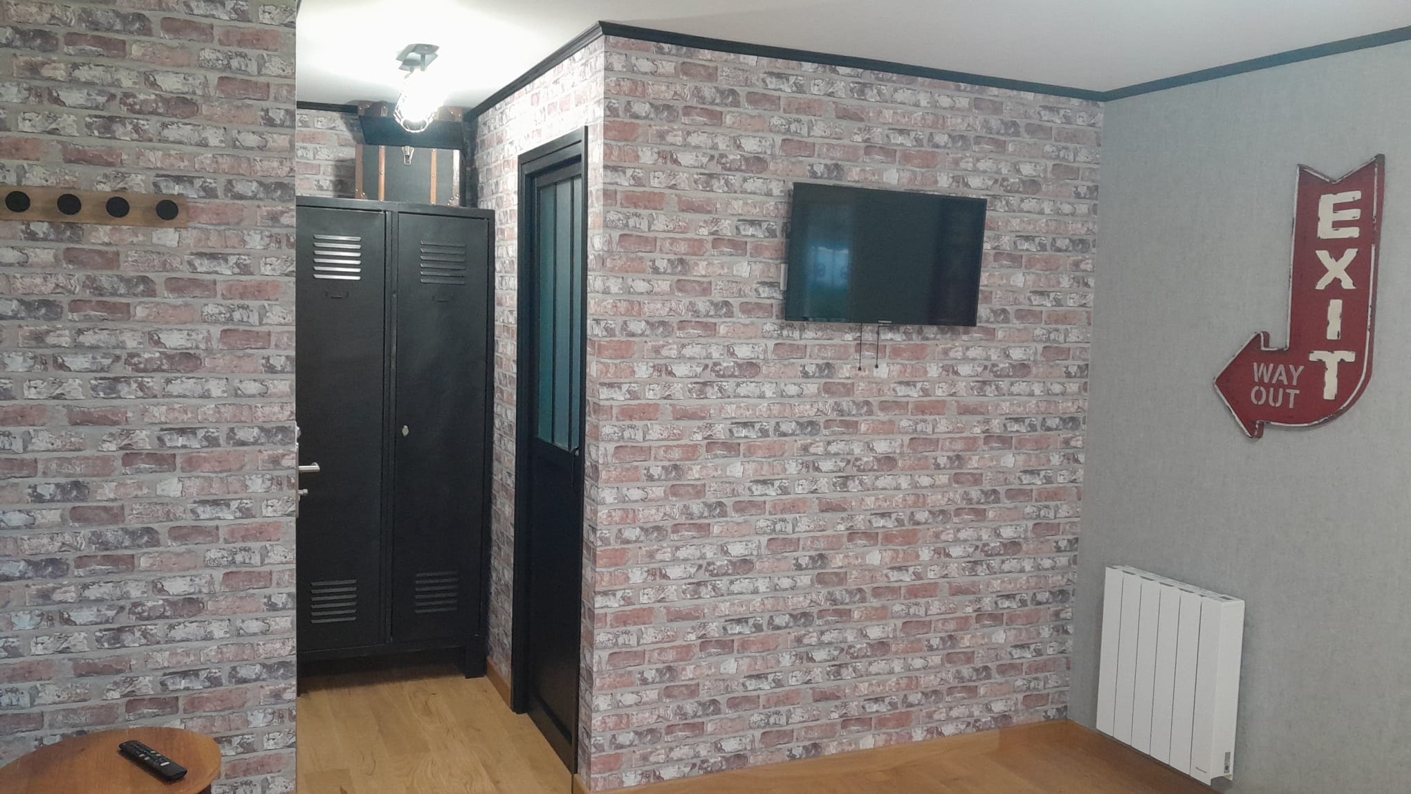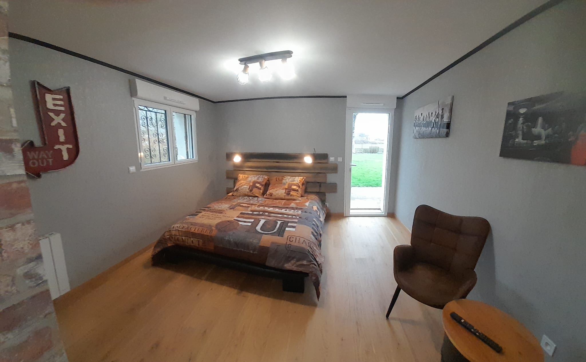 Cette chambre d’hôtes de style industrielle offre un espace moderne et accueillant.